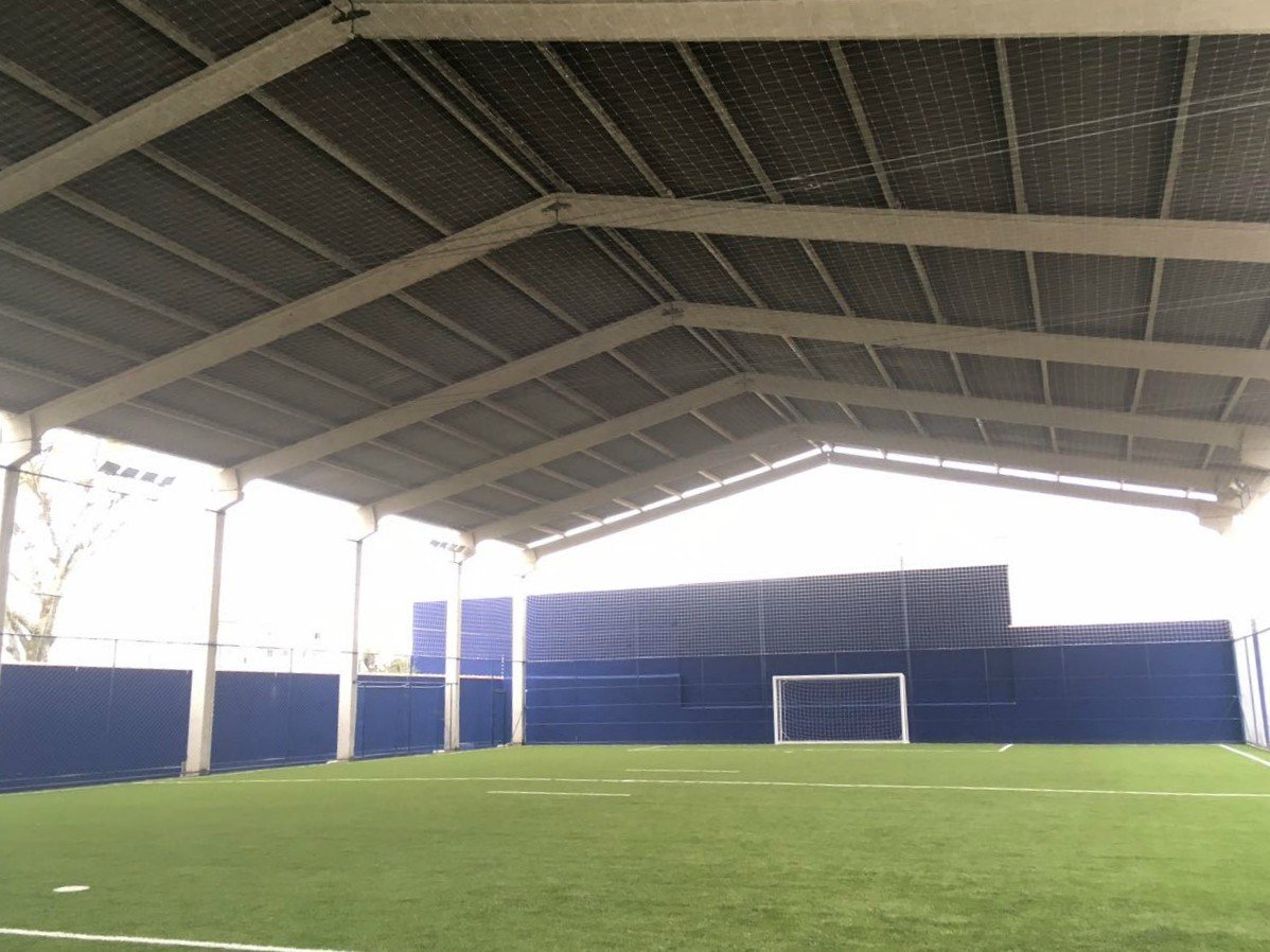 - Galpão para cancha de futebol: estrutura 25x40x7m, com beirais e dimensões adequadas para a cancha.