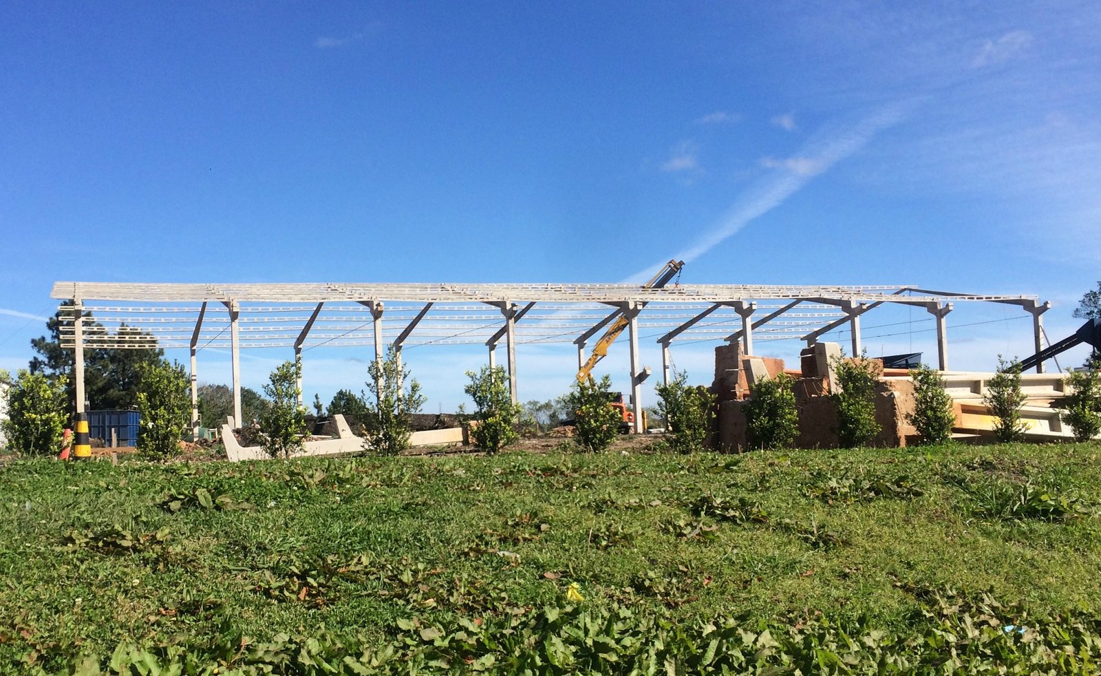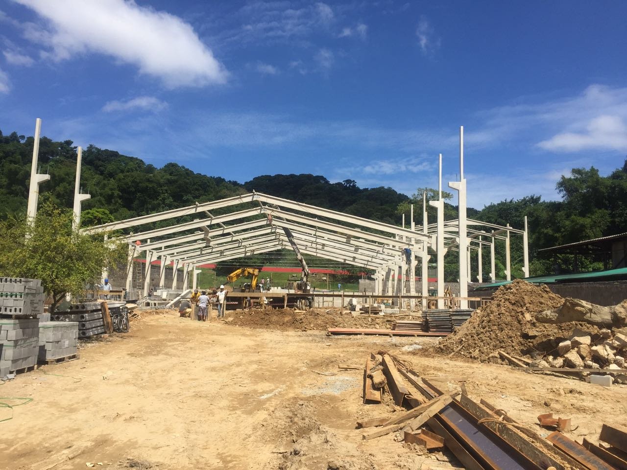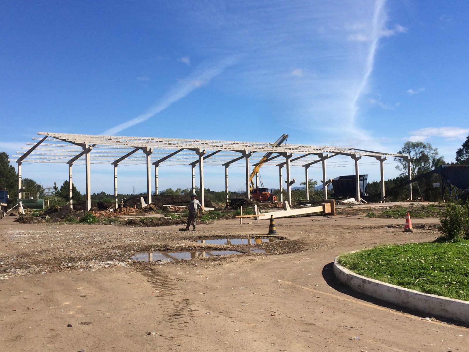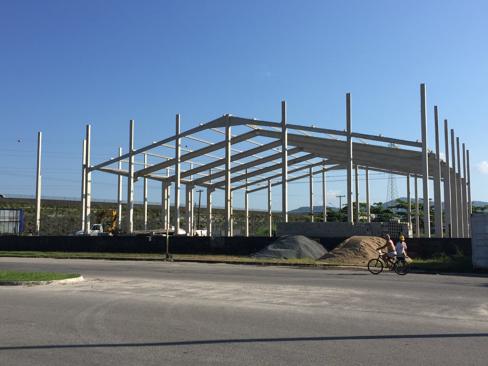 - Galpão para setor gráfico: estrutura 30x90x7,5m. Vão livre de 30m, com mezanino e laje, vigas de fachada e vigas superiores para auxiliar no fechamento e acabamento da obra.