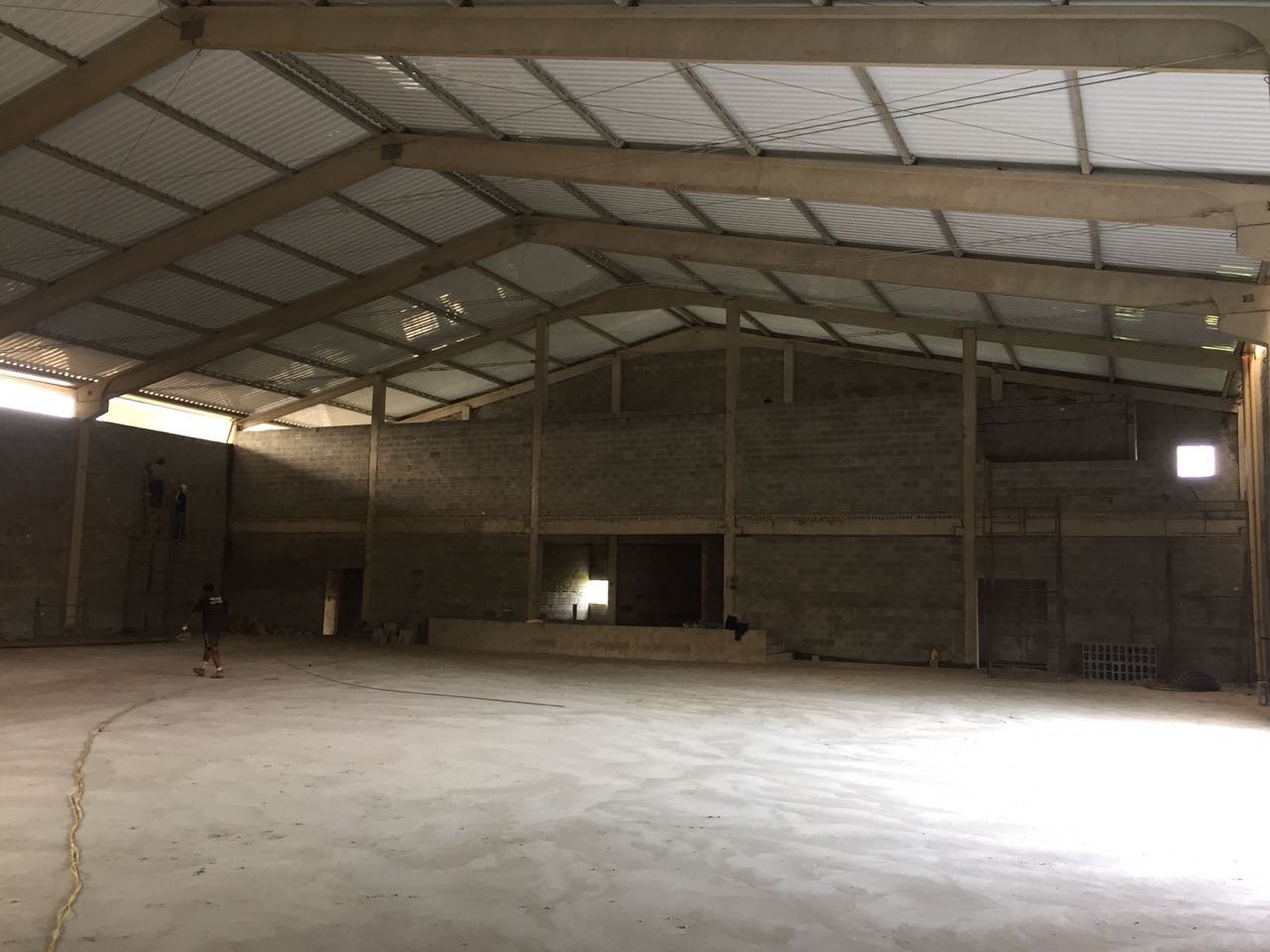 - Galpão para igreja: estrutura com vão de 31m mais extensão de 6,5m de largura, com 34m de comprimento e 7m de altura. Galpão atendendo espaço amplo e livre para utilização de igreja com mezanino aos fundos.