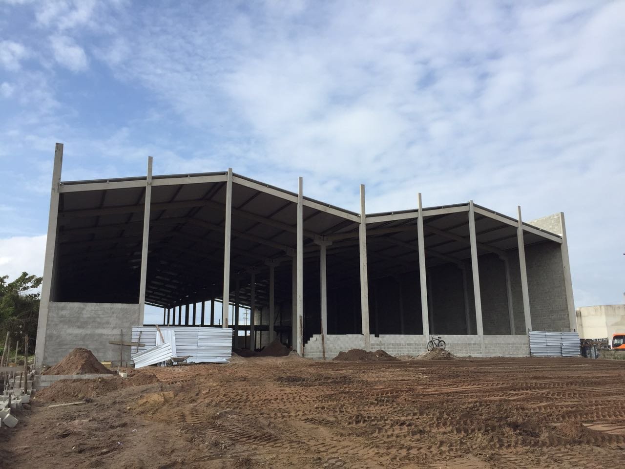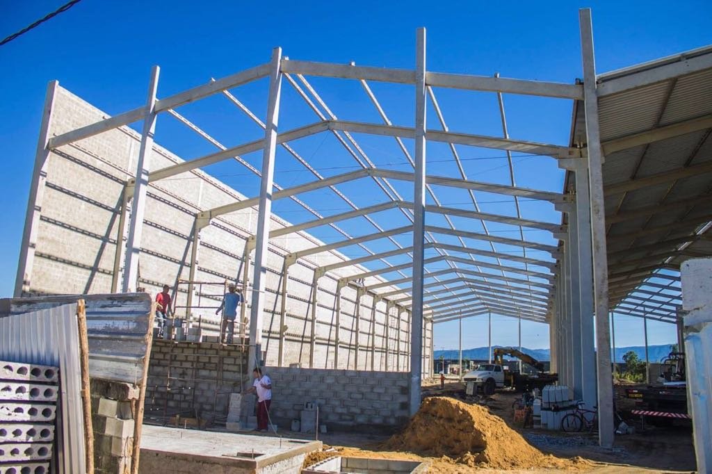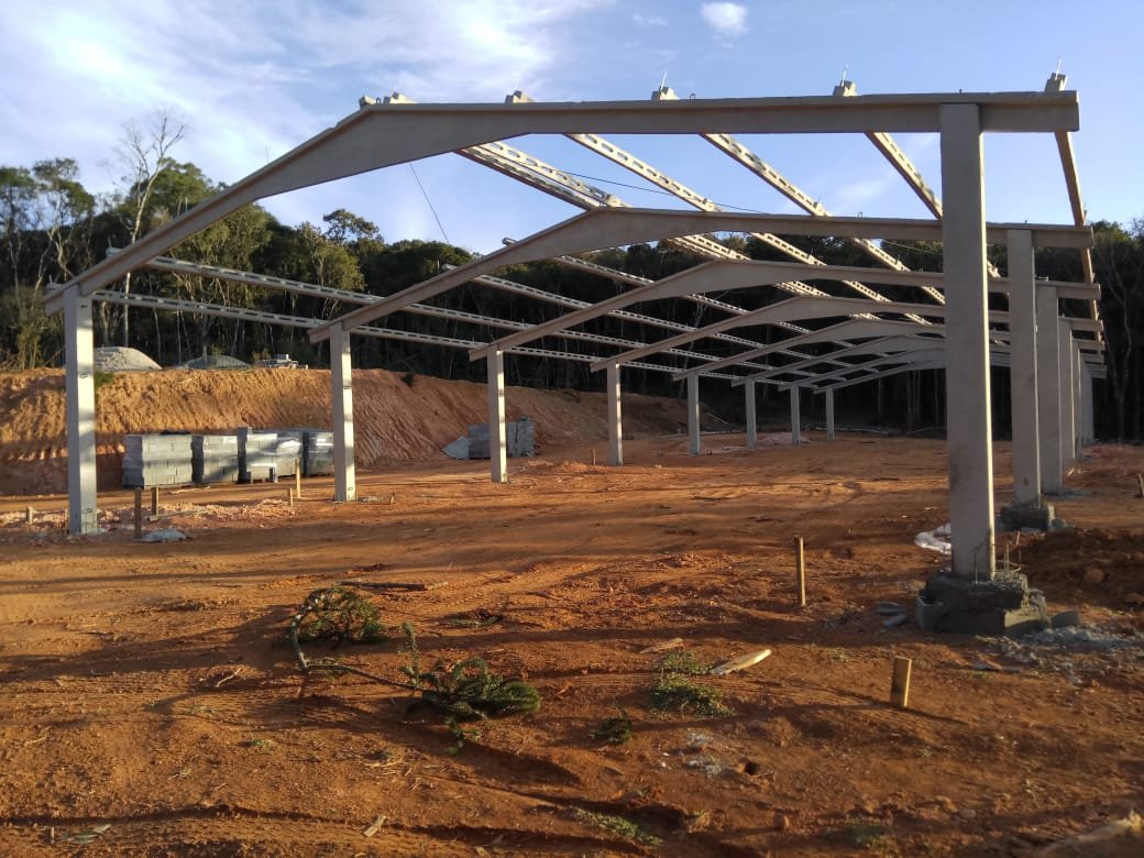 - Galpão para mercado (1): estrutura dupla de 39x85x9m, com pilares de oitão para auxiliar no fechamento da obra.