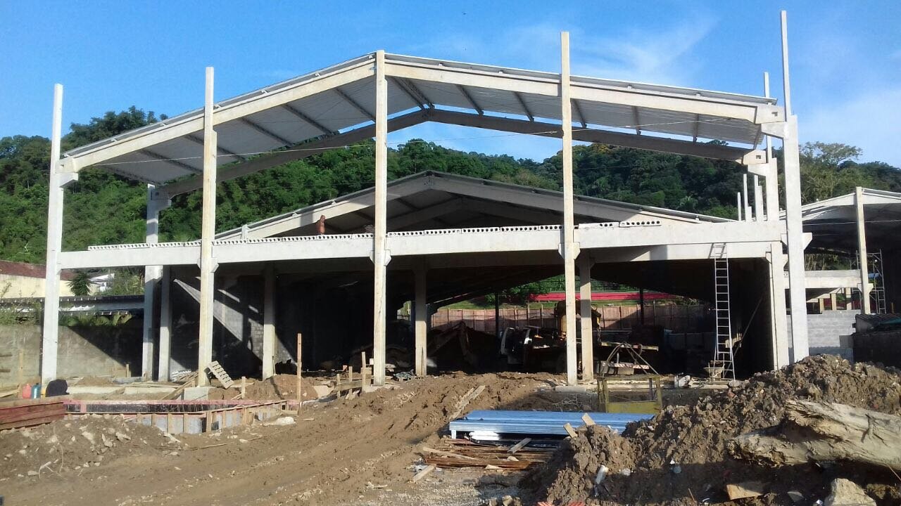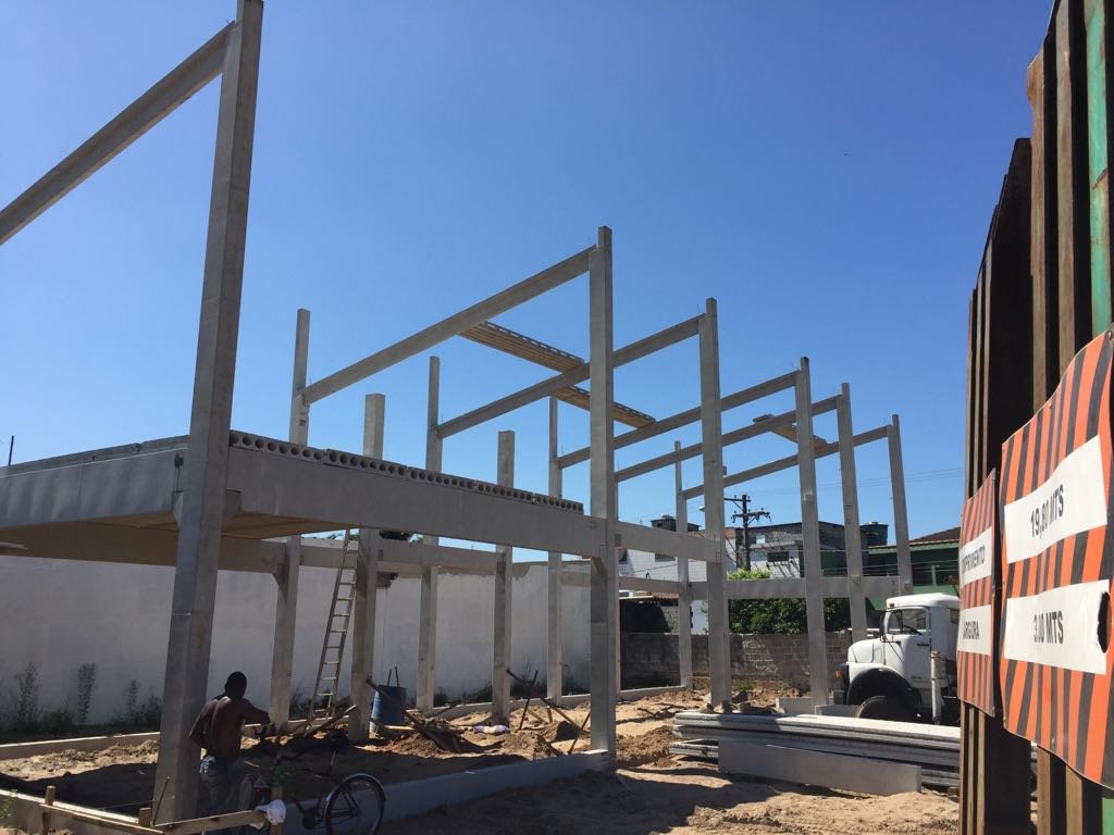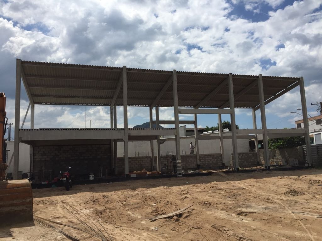 - Lojas comerciais: estrutura pré-fabricada 13x20x6,5m. Mezanino parcial, possibilitando pé direito duplo livre parcial; vigas de fachada ao redor da edificação para melhor acabamento de fachada.